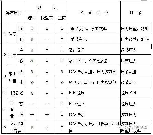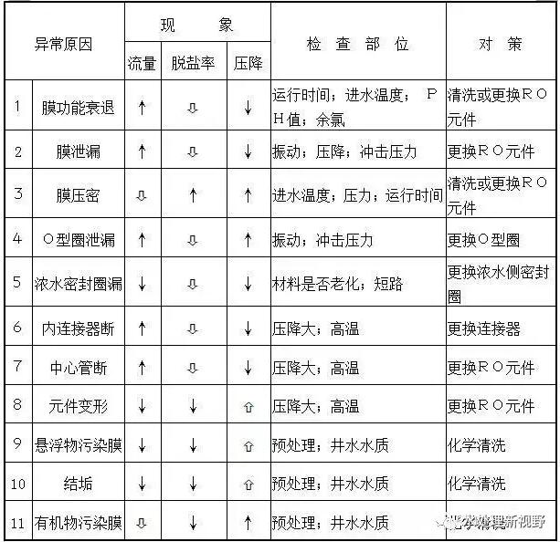 2.反滲透組件部份異常及對(duì)策: