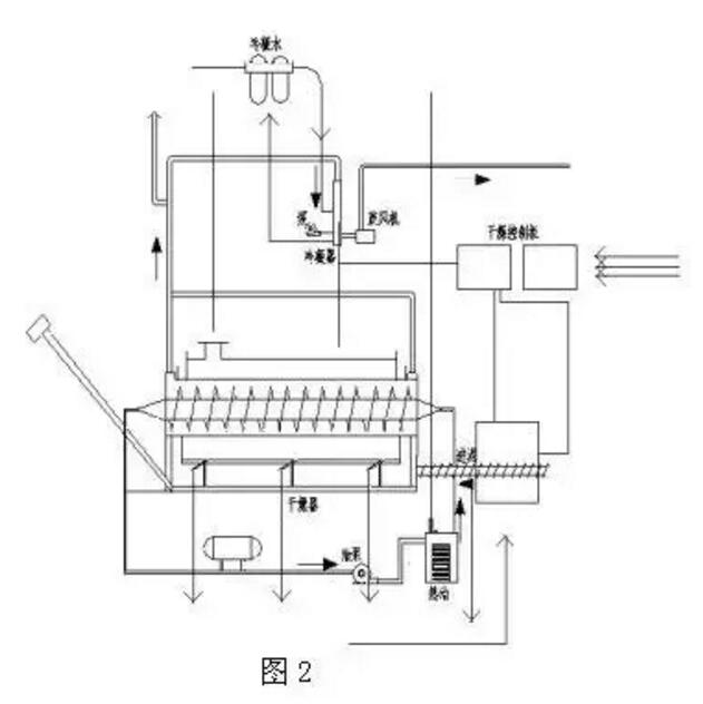 如圖2是濕污泥直接進(jìn)料、間接加熱轉(zhuǎn)鼓干化系統(tǒng)工藝流程圖。